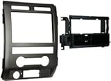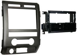 Single DIN Installation Dash Kit for 2009-2010 Ford F-150 Non-NAV Models w/ Driver Info Switches in Factory Panel, Painted Matte Black to Match Factory Dash. Install dash kit for Single DIN/ISO Radios, Includes a storage pocket below the radio, Designed and manufactured with precision tolerances, resulting in a gapless fit between the dash and the kit, Painted to match factory dash color, High-grade ABS plastic construction, Factory style texture, Kit Includes: 1. Radio Housing 2. Radio Housing Trim Plate 3. Radio Housing Brackets